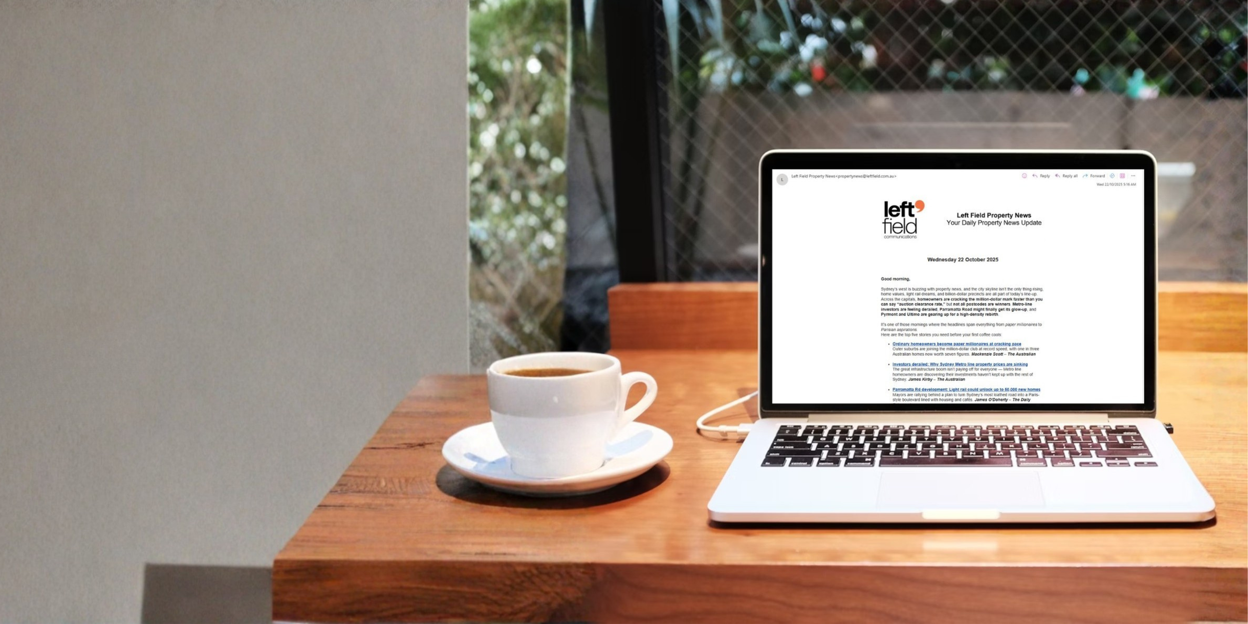 Whether you’re tracking approvals, market sentiment, policy shifts or developer activity, Left Field Property News puts the big picture in your inbox, Monday to Friday.